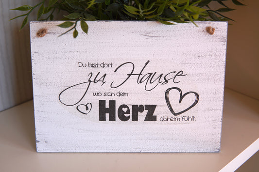 Spruchschild DIN A5 - Du bist dort zu Hause wo sich dein Herz daheim fühlt.