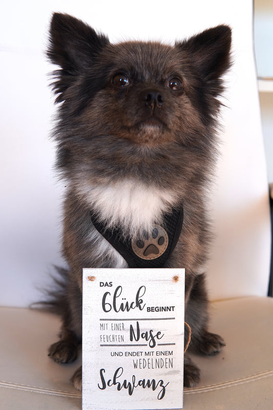 Spruchschild DIN A6 - Das Glück beginnt mit einer feuchten Nase und endet mit einem wedelnden Schwanz.