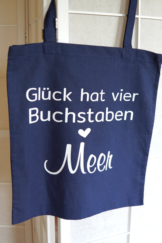 Stofftasche - „Glück hat vier Buchstaben - Meer"